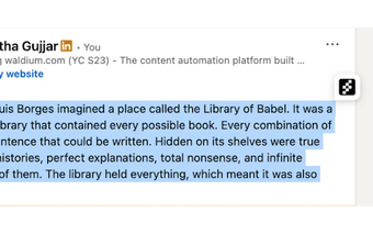 Waldium är en AI-driven tillägg för Chrome som hjälper användare att skapa intelligenta och kontextanpassade svar på inlägg och kommentarer på olika sociala medieplattformar. Genom att enkelt markera text och klicka på Waldium-bubblan kan användare generera relevanta svar som speglar deras röst och expertis. Programmet erbjuder också möjligheten att växla mellan olika författarpersonligheter, vilket gör det enkelt att anpassa tonen efter plattform och publik.